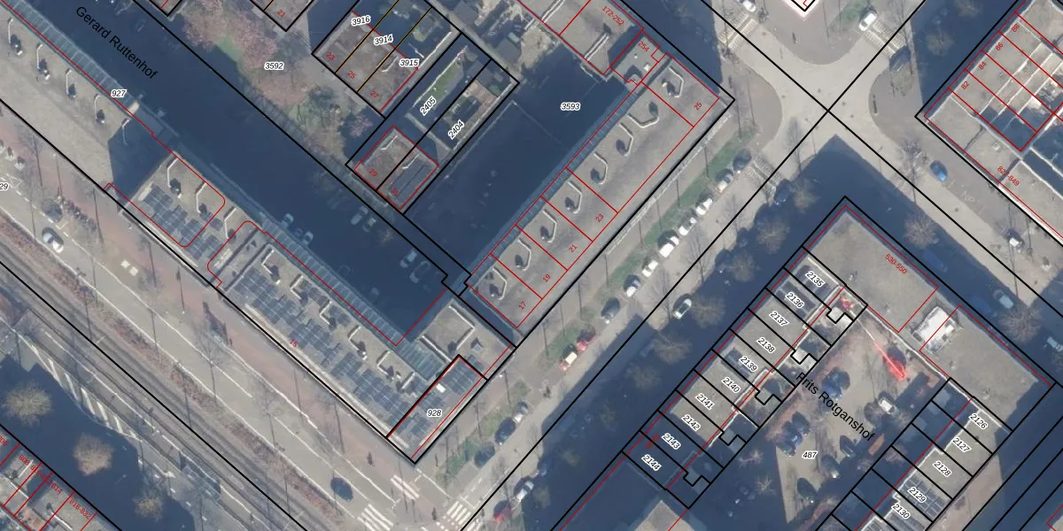Het perceel waarop het adres ligt is ASD41-AU-3593. De afkorting 'ASD41' staat voor kadastrale gemeente Amsterdam. Het perceel is kleiner dan gemiddeld in Amsterdam. Het perceel is 2765 m² groot, terwijl het gemiddelde ligt op 7285,32 m². Het kleinste perceel in de kadastrale gemeente is 0 m² groot. De grootste perceeloppervlakte is 2,75 km². Op het perceel zijn 53 adressen aanwezig. De huidige grenzen van het perceel zijn digitaal in de Basisregistratie Kadaster (BRK) geregistreerd op 26-09-2023.