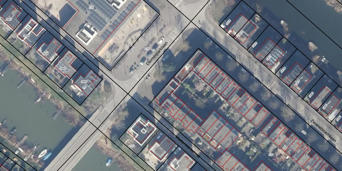 Het perceel waarop Diemerparklaan 6 staat heeft een oppervlakte van 7647 m². Dit is een zeer groot perceel. De perceeloppervlakte wordt geregistreerd door het Kadaster. Gedetailleerde informatie over de maten van dit perceel kunt u vinden in het rapport Kadastrale kaart met maatvoering van Diemerparklaan 6.