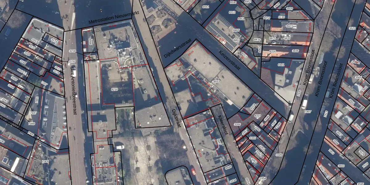 Het perceel waarop het adres ligt is ASD05-G-8553. De afkorting 'ASD05' staat voor kadastrale gemeente Amsterdam. De gemiddelde perceeloppervlakte in de kadastrale gemeente Amsterdam is 324,09 m². Dit perceel is met zijn 1200 m² dus groter dan gemiddeld. Het grootste perceel in de kadastrale gemeente is 9,2 ha. Het kleinste perceel heeft een oppervlakte van 0 m². Op het perceel zijn 51 adressen aanwezig. De huidige grenzen van het perceel zijn digitaal in de Basisregistratie Kadaster (BRK) geregistreerd op 10-11-2006.