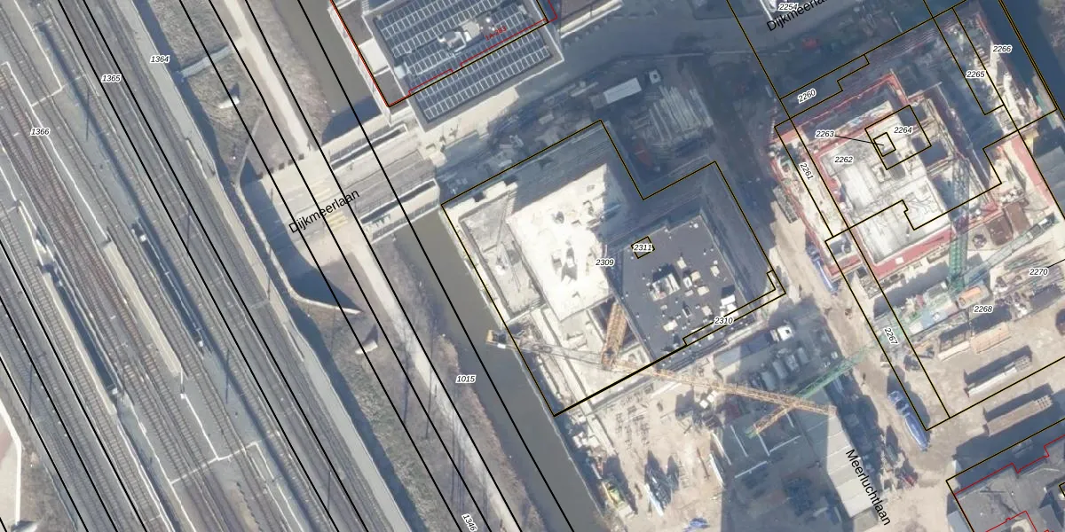 Het perceel waarop Dijkmeerlaan 100 staat heeft een oppervlakte van 1906 m². Dit is een zeer groot perceel. De perceeloppervlakte wordt geregistreerd door het Kadaster. Gedetailleerde informatie over de maten van dit perceel kunt u vinden in het rapport Kadastrale kaart met maatvoering van Dijkmeerlaan 100.