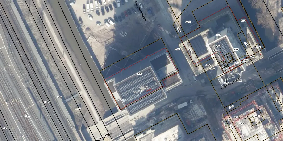 Dijkmeerlaan 213 is gelegen op kadastraal perceel ASD27AG2025. Deze kadastrale aanduiding is uniek en wordt gebruikt door het Kadaster om eigendomsrechten en andere zakelijke rechten vast te leggen. Het perceel maakt onderdeel uit van de kadastrale gemeente Amsterdam.