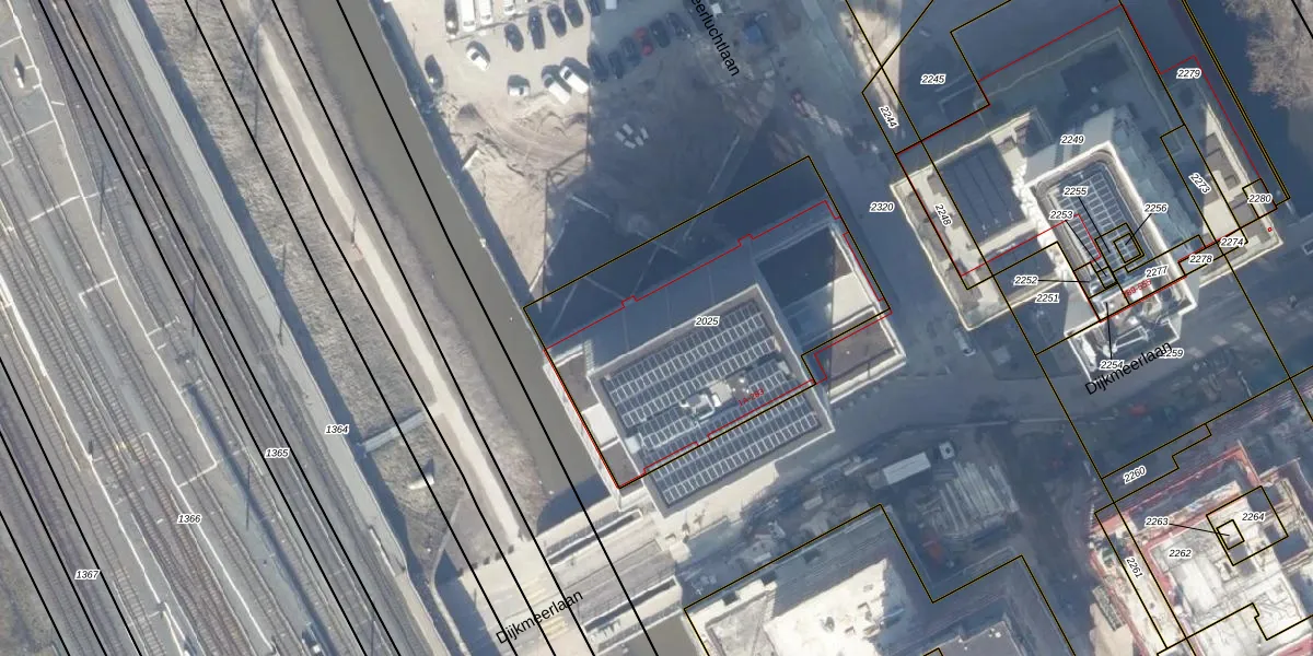 Dijkmeerlaan 221 is gelegen op kadastraal perceel ASD27AG2025. Deze kadastrale aanduiding is uniek en wordt gebruikt door het Kadaster om eigendomsrechten en andere zakelijke rechten vast te leggen. Het perceel maakt onderdeel uit van de kadastrale gemeente Amsterdam.