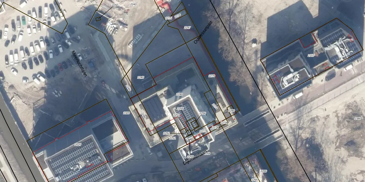 Het perceel waarop Dijkmeerlaan 409 staat heeft een oppervlakte van 1290 m². Dit is een zeer groot perceel. De perceeloppervlakte wordt geregistreerd door het Kadaster. Gedetailleerde informatie over de maten van dit perceel kunt u vinden in het rapport Kadastrale kaart met maatvoering van Dijkmeerlaan 409.