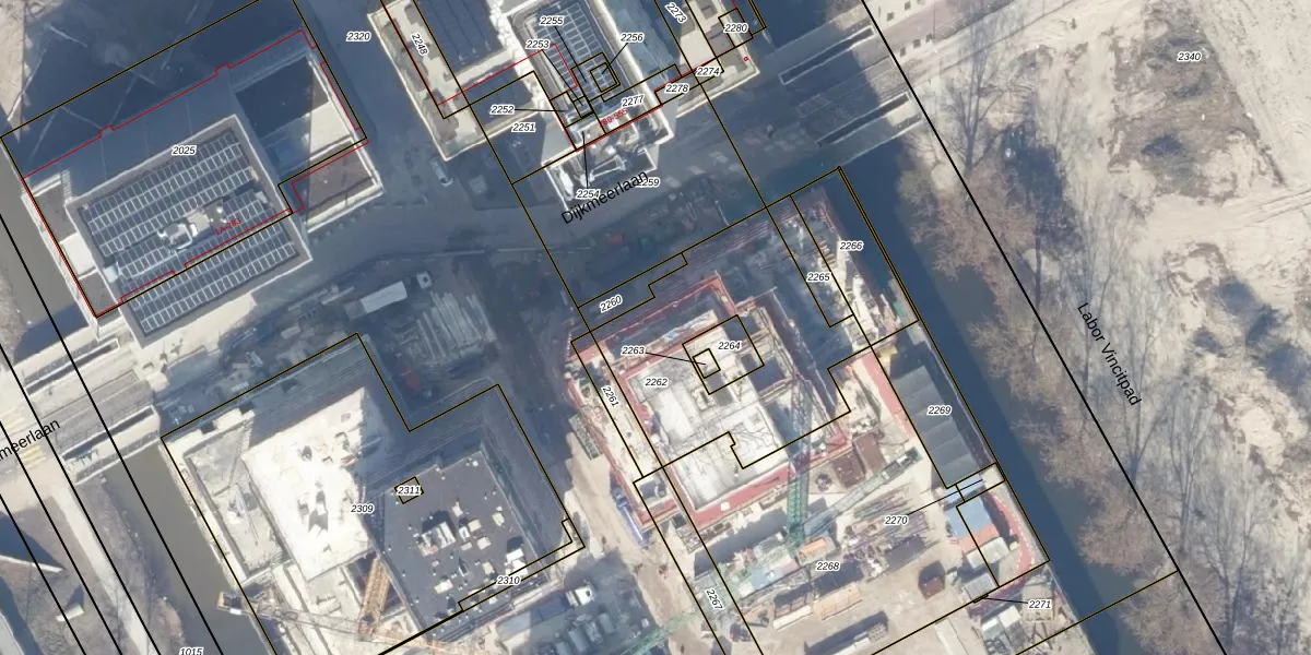Het adres ligt op het perceel ASD27-AG-2262, dat zich in de kadastrale gemeente Amsterdam bevindt. Het perceel is kleiner dan gemiddeld in Amsterdam. Het perceel is 884 m² groot, terwijl het gemiddelde ligt op 3544,61 m². De grootste perceeloppervlakte in de kadastrale gemeente is 18,4 ha. De kleinste oppervlakte bedraagt 1 m². Op het perceel liggen in totaal 79 adressen. In de Basisregistratie Kadaster (BRK) werden de grenzen van het perceel geregistreerd op 08-11-2022.
