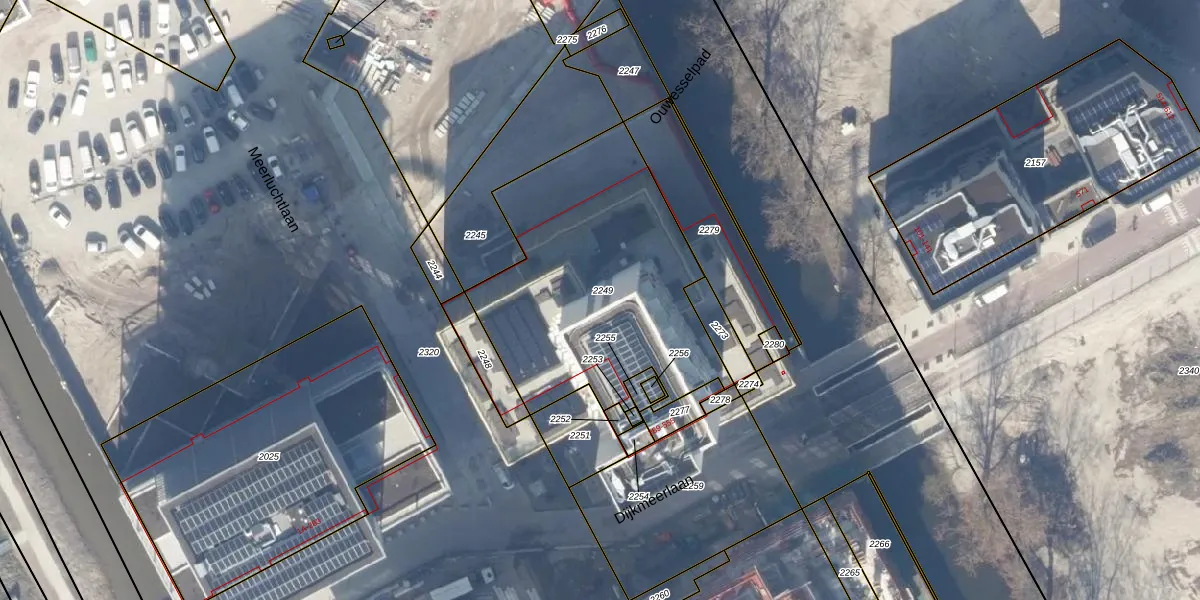 Het perceel waarop Dijkmeerlaan 425 staat heeft een oppervlakte van 1290 m². Dit is een zeer groot perceel. De perceeloppervlakte wordt geregistreerd door het Kadaster. Gedetailleerde informatie over de maten van dit perceel kunt u vinden in het rapport Kadastrale kaart met maatvoering van Dijkmeerlaan 425.
