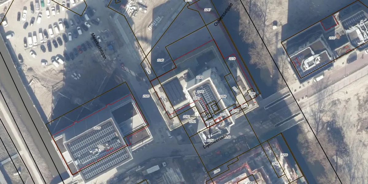 Het perceel waarop Dijkmeerlaan 435 staat heeft een oppervlakte van 1290 m². Dit is een zeer groot perceel. De perceeloppervlakte wordt geregistreerd door het Kadaster. Gedetailleerde informatie over de maten van dit perceel kunt u vinden in het rapport Kadastrale kaart met maatvoering van Dijkmeerlaan 435.
