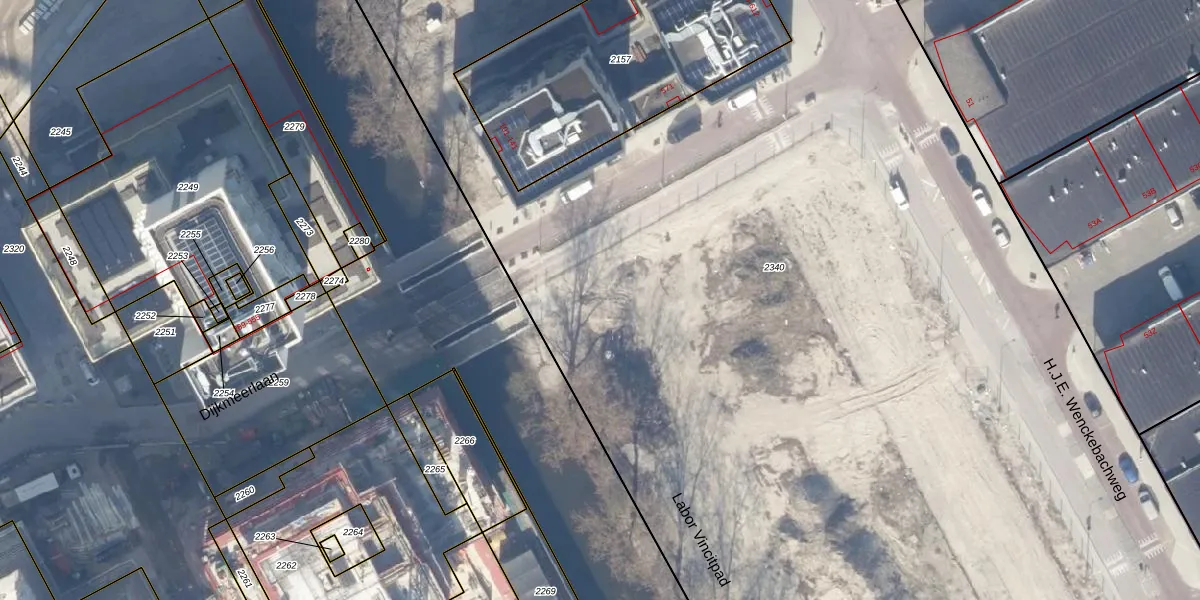 Het perceel waarop het adres ligt is ASD27-AG-2340. De afkorting 'ASD27' staat voor kadastrale gemeente Amsterdam. De oppervlakte van het perceel is 8,6 ha. Dat is groter dan gemiddeld in Amsterdam, waar de gemiddelde perceeloppervlakte op 3544,61 m² ligt. Het kleinste perceel in de kadastrale gemeente is 1 m² groot. De grootste perceeloppervlakte is 18,4 ha. Op het perceel liggen in totaal 248 adressen. In de Basisregistratie Kadaster (BRK) werden de grenzen van het perceel geregistreerd op 13-06-2025.