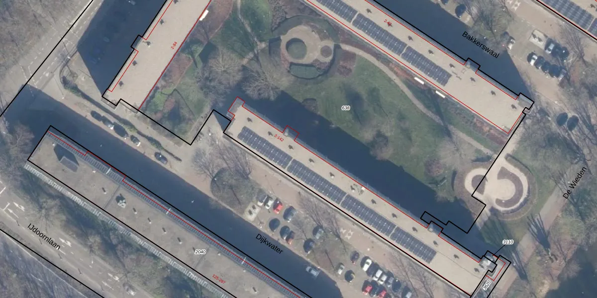 Het perceel waarop Dijkwater 116 staat heeft een oppervlakte van 8490 m². Dit is een zeer groot perceel. De perceeloppervlakte wordt geregistreerd door het Kadaster. Gedetailleerde informatie over de maten van dit perceel kunt u vinden in het rapport Kadastrale kaart met maatvoering van Dijkwater 116.
