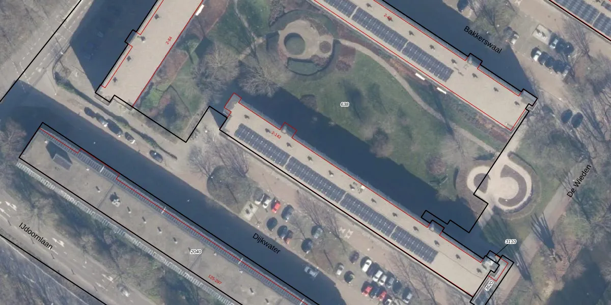 Het perceel waarop Dijkwater 132 staat heeft een oppervlakte van 8490 m². Dit is een zeer groot perceel. De perceeloppervlakte wordt geregistreerd door het Kadaster. Gedetailleerde informatie over de maten van dit perceel kunt u vinden in het rapport Kadastrale kaart met maatvoering van Dijkwater 132.