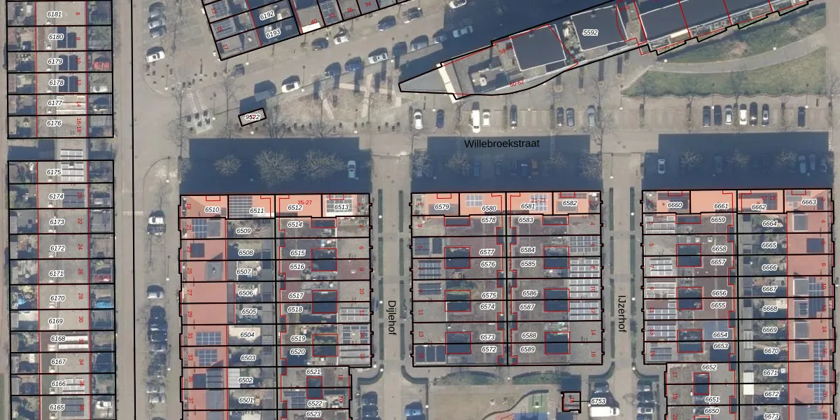 Het perceel waarop Dijlehof 1 staat heeft een oppervlakte van 62 m². Dit is een klein perceel. De perceeloppervlakte wordt geregistreerd door het Kadaster. Gedetailleerde informatie over de maten van dit perceel kunt u vinden in het rapport Kadastrale kaart met maatvoering van Dijlehof 1.