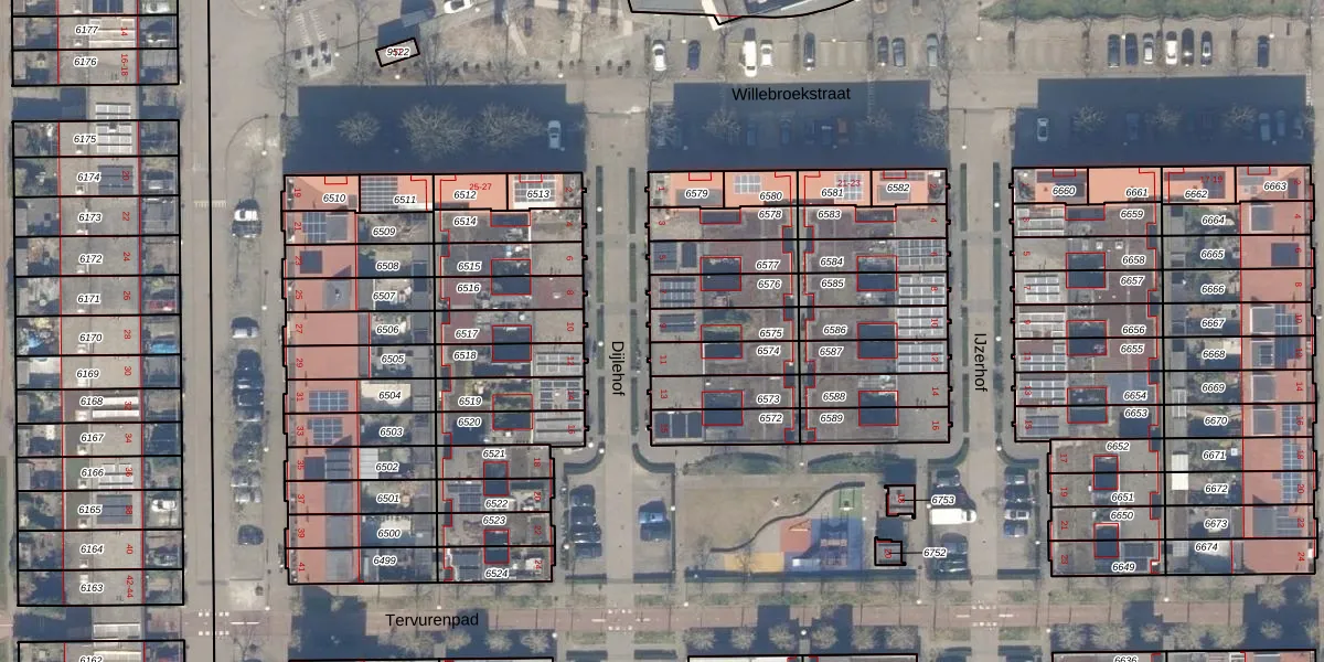 Het perceel waarop Dijlehof 9 staat heeft een oppervlakte van 115 m². Dit is een middelgroot perceel. De perceeloppervlakte wordt geregistreerd door het Kadaster. Gedetailleerde informatie over de maten van dit perceel kunt u vinden in het rapport Kadastrale kaart met maatvoering van Dijlehof 9.