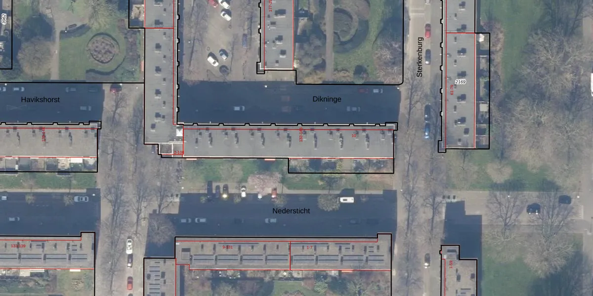 Het perceel waarop Dikninge 132 staat heeft een oppervlakte van 2121 m². Dit is een zeer groot perceel. De perceeloppervlakte wordt geregistreerd door het Kadaster. Gedetailleerde informatie over de maten van dit perceel kunt u vinden in het rapport Kadastrale kaart met maatvoering van Dikninge 132.