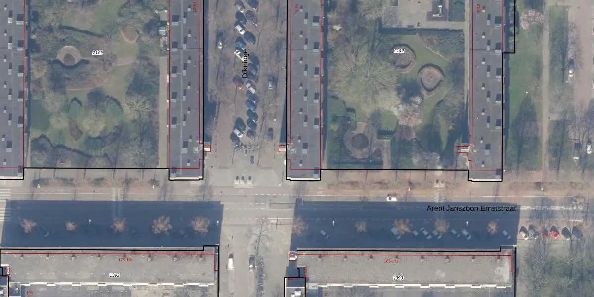 Dikninge 25 is gelegen op kadastraal perceel ASD30AK2142. Deze kadastrale aanduiding is uniek en wordt gebruikt door het Kadaster om eigendomsrechten en andere zakelijke rechten vast te leggen. Het perceel maakt onderdeel uit van de kadastrale gemeente Amsterdam.