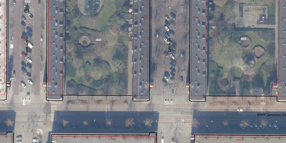 Dikninge 40 is gelegen op kadastraal perceel ASD30AK2141. Deze kadastrale aanduiding is uniek en wordt gebruikt door het Kadaster om eigendomsrechten en andere zakelijke rechten vast te leggen. Het perceel maakt onderdeel uit van de kadastrale gemeente Amsterdam.