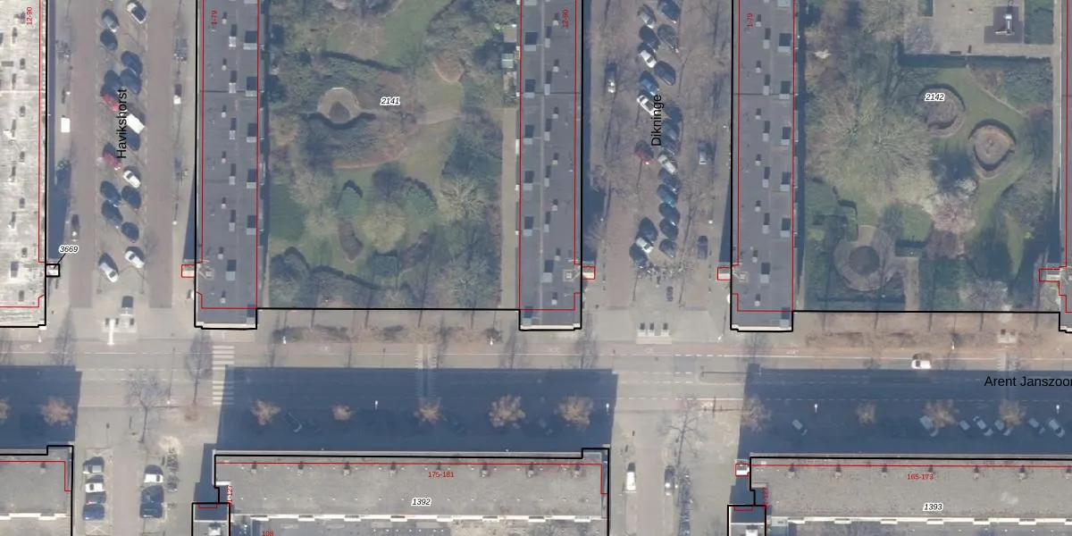 Het adres is gelegen op perceel 2141 in de sectie AK en de kadastrale gemeente Amsterdam. De kadastrale aanduiding is aldus ASD30-AK-2141. De gemiddelde perceeloppervlakte in de kadastrale gemeente Amsterdam is 1336,34 m². Dit perceel is met zijn 5865 m² dus groter dan gemiddeld. Het grootste perceel in de kadastrale gemeente is 22,2 ha. Het kleinste perceel heeft een oppervlakte van 0 m². Er zijn 80 adressen aanwezig op het perceel. In de Basisregistratie Kadaster (BRK) werden de grenzen van het perceel geregistreerd op 29-08-2006.
