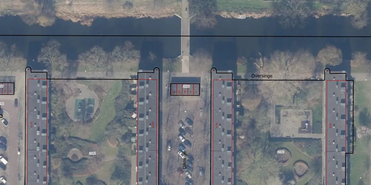 Het perceel waarop Dikninge 6 staat heeft een oppervlakte van 96 m². Dit is een klein perceel. De perceeloppervlakte wordt geregistreerd door het Kadaster. Gedetailleerde informatie over de maten van dit perceel kunt u vinden in het rapport Kadastrale kaart met maatvoering van Dikninge 6.