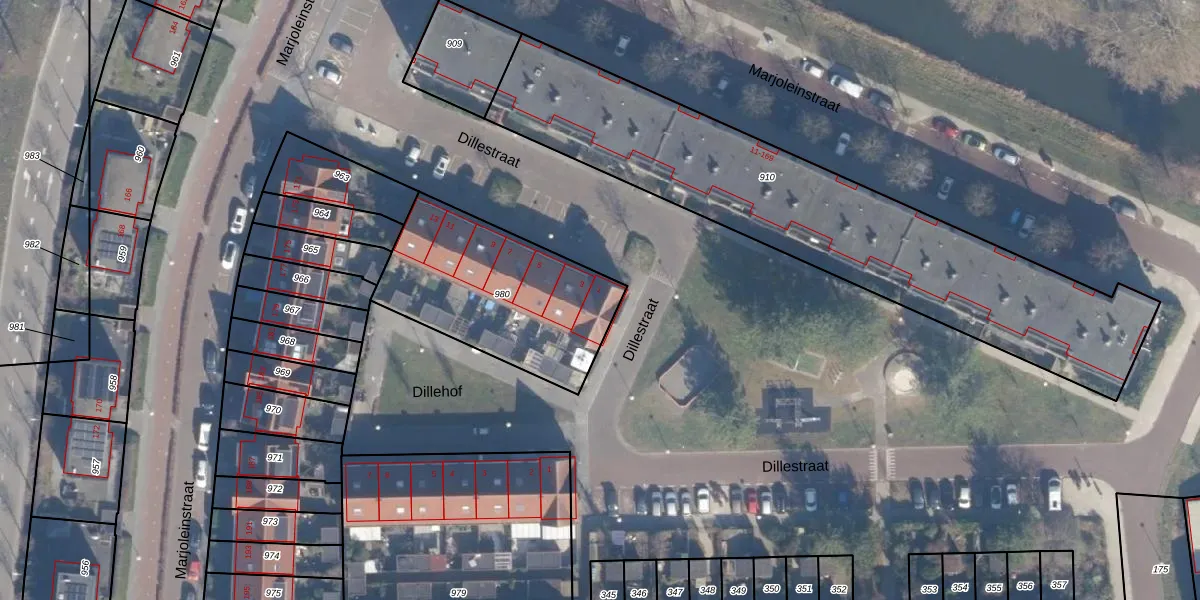 Het perceel waarop Dillestraat 1 staat heeft een oppervlakte van 758 m². Dit is een groot perceel. De perceeloppervlakte wordt geregistreerd door het Kadaster. Gedetailleerde informatie over de maten van dit perceel kunt u vinden in het rapport Kadastrale kaart met maatvoering van Dillestraat 1.