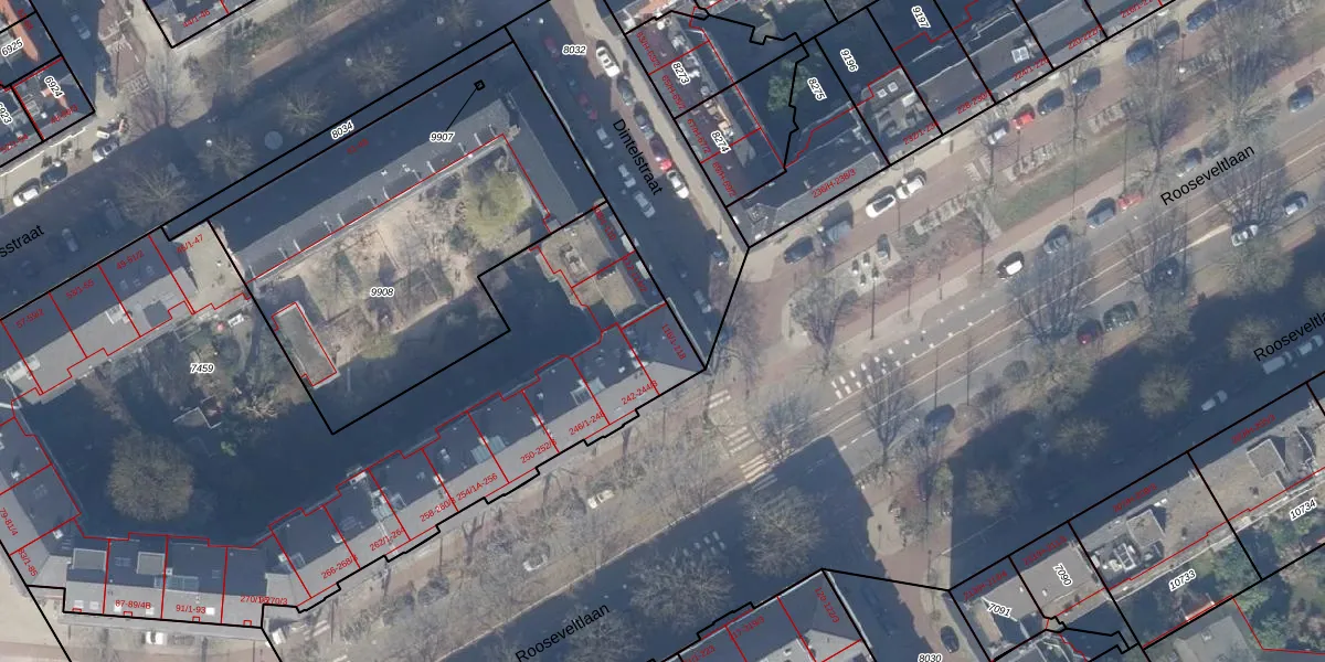Dintelstraat 116-3 is gelegen op kadastraal perceel ASD18V7459. Deze kadastrale aanduiding is uniek en wordt gebruikt door het Kadaster om eigendomsrechten en andere zakelijke rechten vast te leggen. Het perceel maakt onderdeel uit van de kadastrale gemeente Amsterdam.