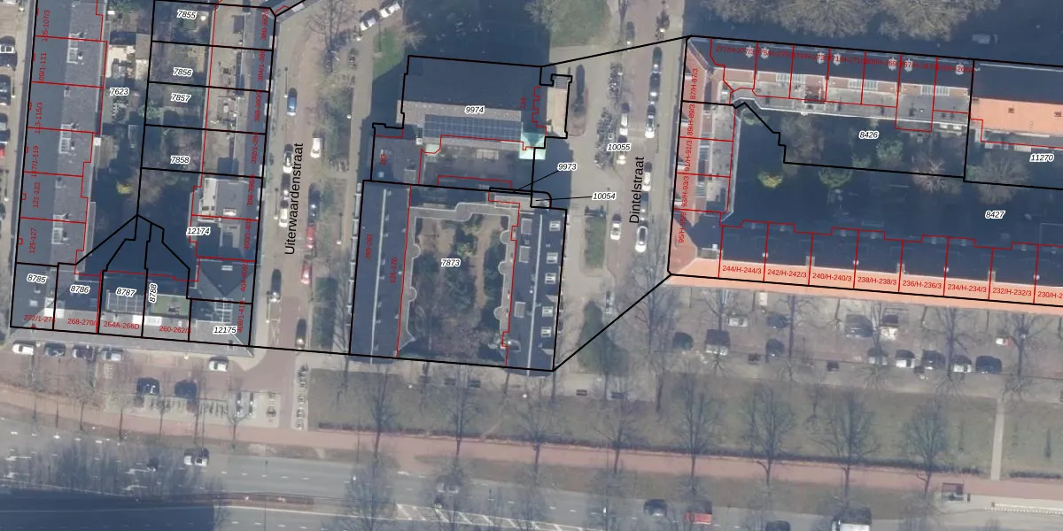 Het perceel waarop Dintelstraat 152 staat heeft een oppervlakte van 1249 m². Dit is een zeer groot perceel. De perceeloppervlakte wordt geregistreerd door het Kadaster. Gedetailleerde informatie over de maten van dit perceel kunt u vinden in het rapport Kadastrale kaart met maatvoering van Dintelstraat 152.