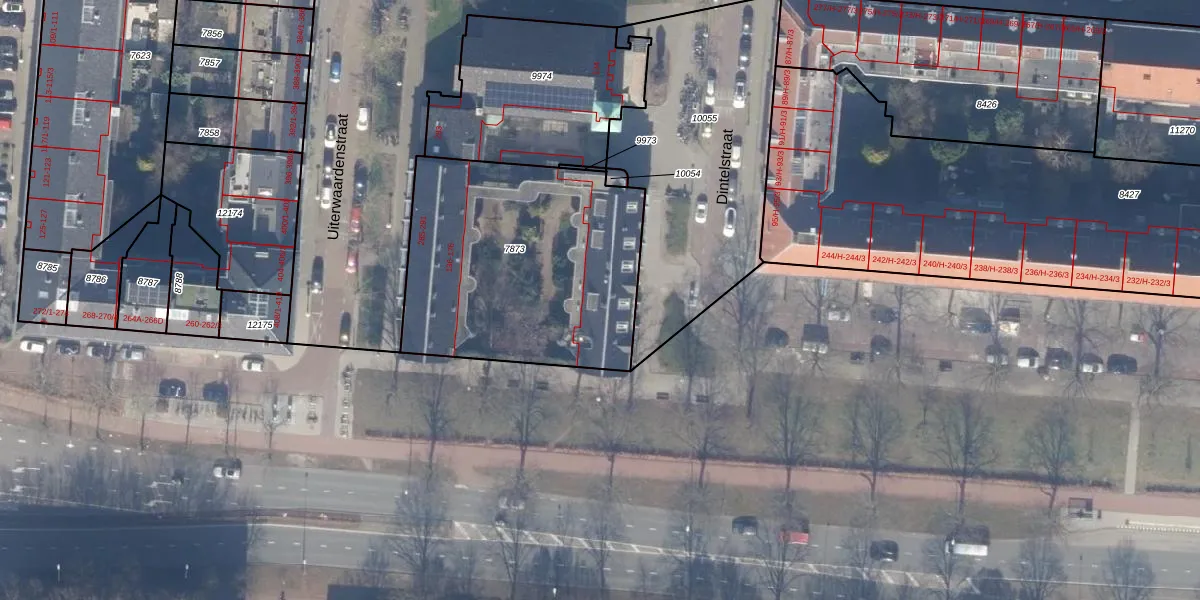 Het perceel waarop Dintelstraat 162 staat heeft een oppervlakte van 1249 m². Dit is een zeer groot perceel. De perceeloppervlakte wordt geregistreerd door het Kadaster. Gedetailleerde informatie over de maten van dit perceel kunt u vinden in het rapport Kadastrale kaart met maatvoering van Dintelstraat 162.