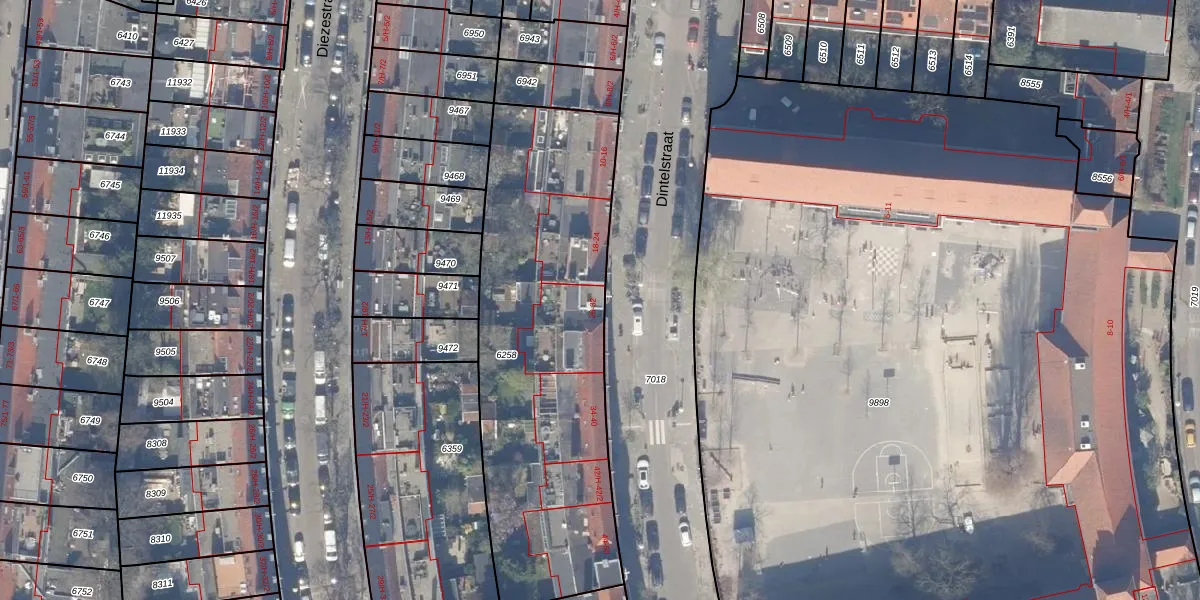 Dintelstraat 26 is gelegen op kadastraal perceel ASD18V6258. Deze kadastrale aanduiding is uniek en wordt gebruikt door het Kadaster om eigendomsrechten en andere zakelijke rechten vast te leggen. Het perceel maakt onderdeel uit van de kadastrale gemeente Amsterdam.