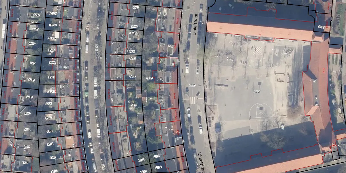 Dintelstraat 34 is gelegen op kadastraal perceel ASD18V6258. Deze kadastrale aanduiding is uniek en wordt gebruikt door het Kadaster om eigendomsrechten en andere zakelijke rechten vast te leggen. Het perceel maakt onderdeel uit van de kadastrale gemeente Amsterdam.