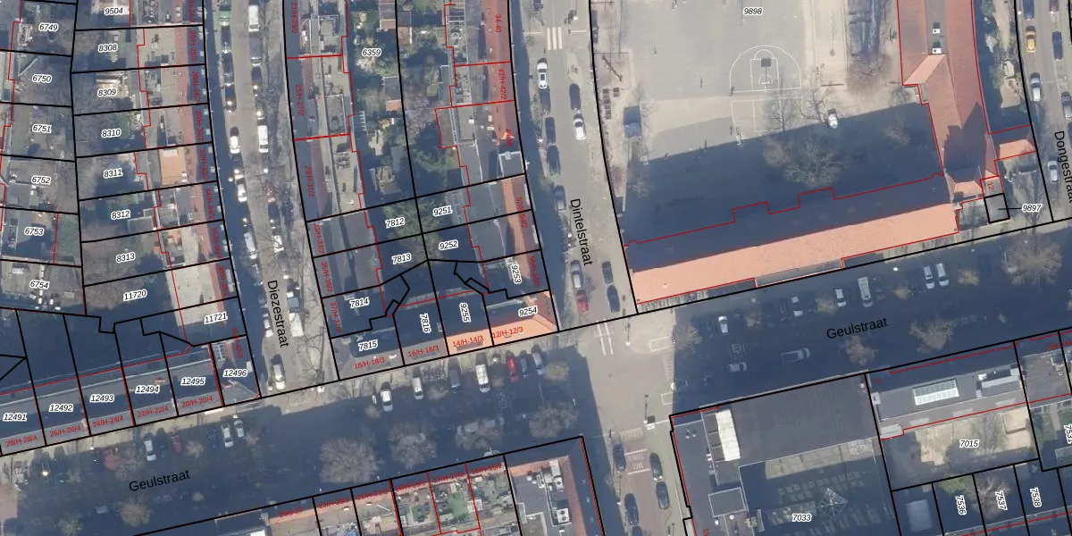 Dintelstraat 56-H is gelegen op kadastraal perceel ASD18V9253. Deze kadastrale aanduiding is uniek en wordt gebruikt door het Kadaster om eigendomsrechten en andere zakelijke rechten vast te leggen. Het perceel maakt onderdeel uit van de kadastrale gemeente Amsterdam.