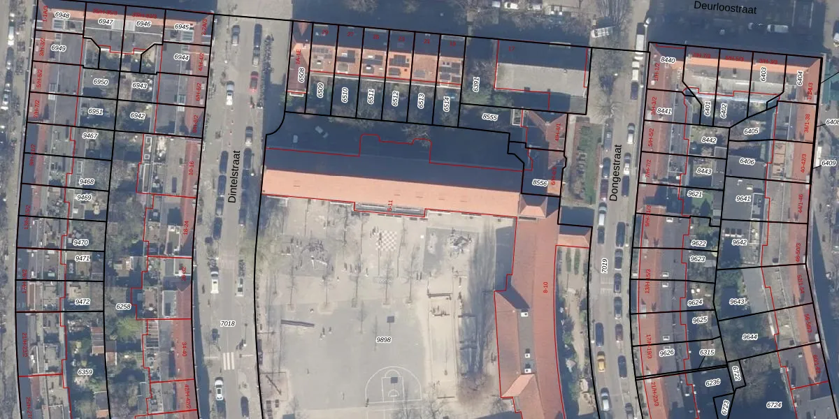 Het perceel waarop Dintelstraat 7 staat heeft een oppervlakte van 7590 m². Dit is een zeer groot perceel. De perceeloppervlakte wordt geregistreerd door het Kadaster. Gedetailleerde informatie over de maten van dit perceel kunt u vinden in het rapport Kadastrale kaart met maatvoering van Dintelstraat 7.