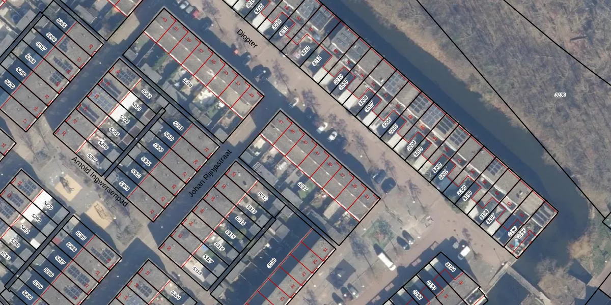 Diopter 43 is gelegen op kadastraal perceel ASD31AL3237. Deze kadastrale aanduiding is uniek en wordt gebruikt door het Kadaster om eigendomsrechten en andere zakelijke rechten vast te leggen. Het perceel maakt onderdeel uit van de kadastrale gemeente Amsterdam.