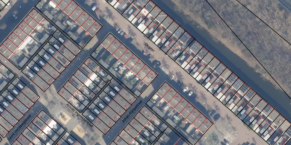 Het perceel waarop Diopter 51 staat heeft een oppervlakte van 896 m². Dit is een groot perceel. De perceeloppervlakte wordt geregistreerd door het Kadaster. Gedetailleerde informatie over de maten van dit perceel kunt u vinden in het rapport Kadastrale kaart met maatvoering van Diopter 51.