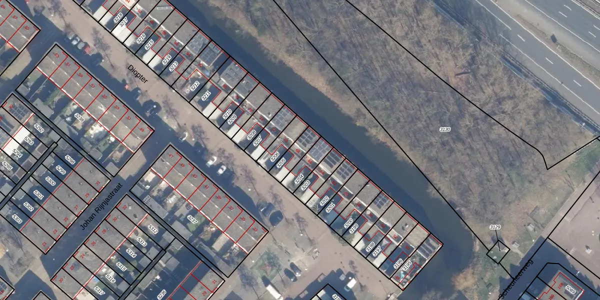 Gebruik de zoekbalk of klik op een perceel voor informatie over de adressen binnen dit perceel.
