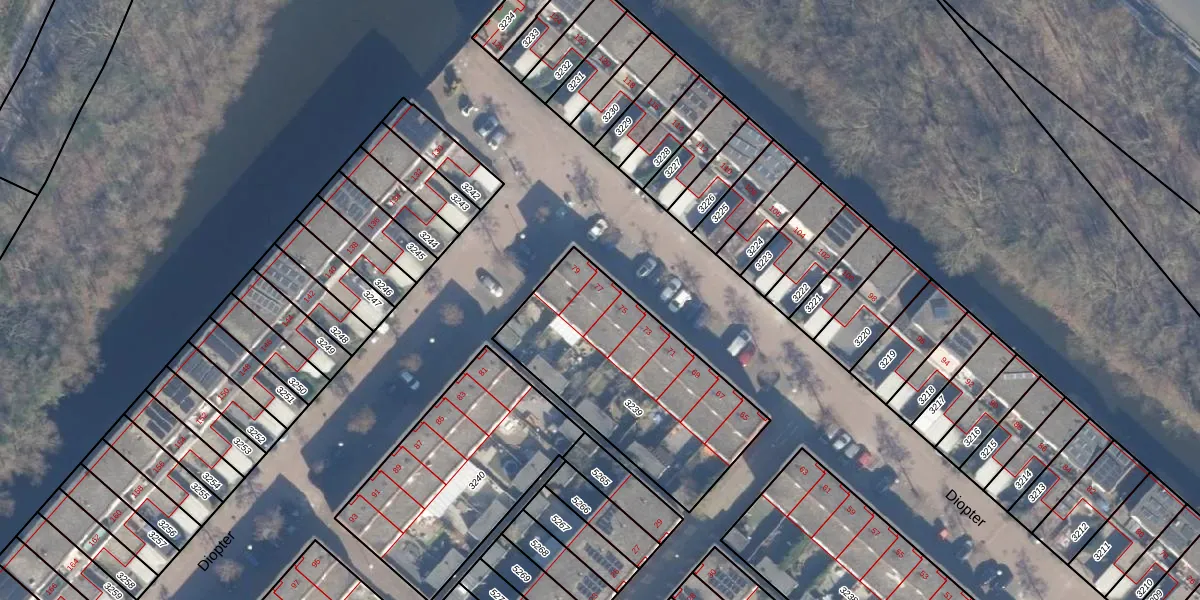 Het perceel waarop Diopter 77 staat heeft een oppervlakte van 896 m². Dit is een groot perceel. De perceeloppervlakte wordt geregistreerd door het Kadaster. Gedetailleerde informatie over de maten van dit perceel kunt u vinden in het rapport Kadastrale kaart met maatvoering van Diopter 77.
