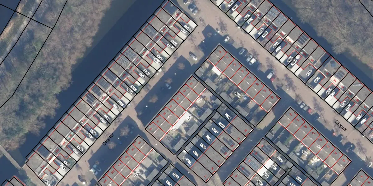 Het perceel waarop Diopter 83 staat heeft een oppervlakte van 813 m². Dit is een groot perceel. De perceeloppervlakte wordt geregistreerd door het Kadaster. Gedetailleerde informatie over de maten van dit perceel kunt u vinden in het rapport Kadastrale kaart met maatvoering van Diopter 83.