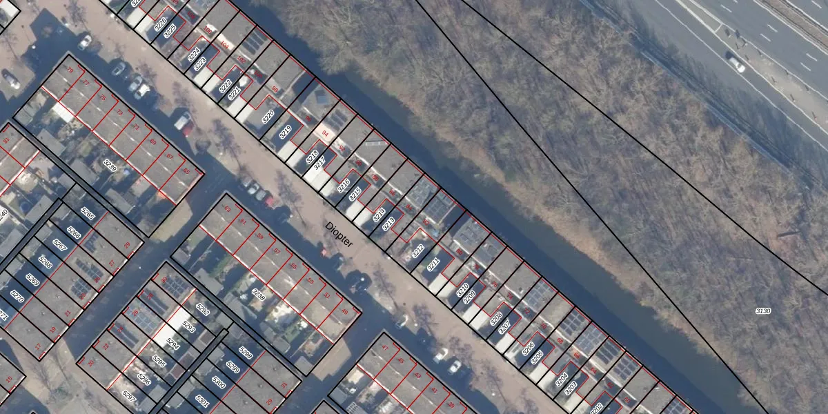 Het perceel waarop Diopter 84 staat heeft een oppervlakte van 111 m². Dit is een middelgroot perceel. De perceeloppervlakte wordt geregistreerd door het Kadaster. Gedetailleerde informatie over de maten van dit perceel kunt u vinden in het rapport Kadastrale kaart met maatvoering van Diopter 84.