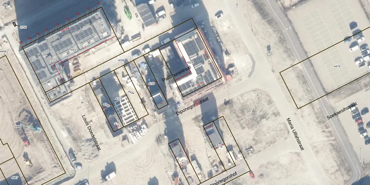 Het perceel waarop Diponegorostraat 75 staat heeft een oppervlakte van 700 m². Dit is een groot perceel. De perceeloppervlakte wordt geregistreerd door het Kadaster. Gedetailleerde informatie over de maten van dit perceel kunt u vinden in het rapport Kadastrale kaart met maatvoering van Diponegorostraat 75.
