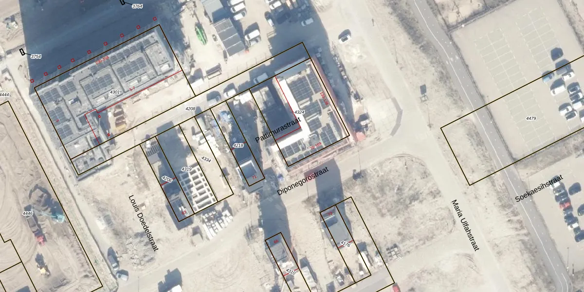 Het perceel waarop Diponegorostraat 93 staat heeft een oppervlakte van 700 m². Dit is een groot perceel. De perceeloppervlakte wordt geregistreerd door het Kadaster. Gedetailleerde informatie over de maten van dit perceel kunt u vinden in het rapport Kadastrale kaart met maatvoering van Diponegorostraat 93.