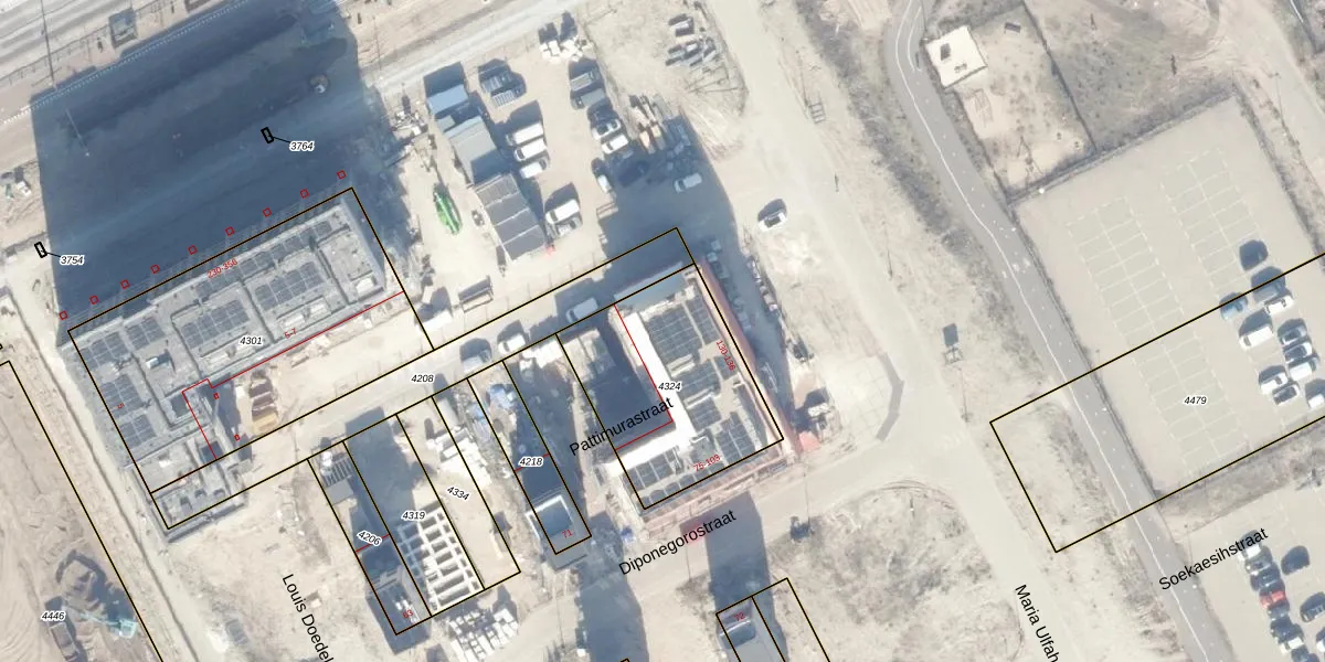 Het perceel waarop Diponegorostraat 97 staat heeft een oppervlakte van 700 m². Dit is een groot perceel. De perceeloppervlakte wordt geregistreerd door het Kadaster. Gedetailleerde informatie over de maten van dit perceel kunt u vinden in het rapport Kadastrale kaart met maatvoering van Diponegorostraat 97.