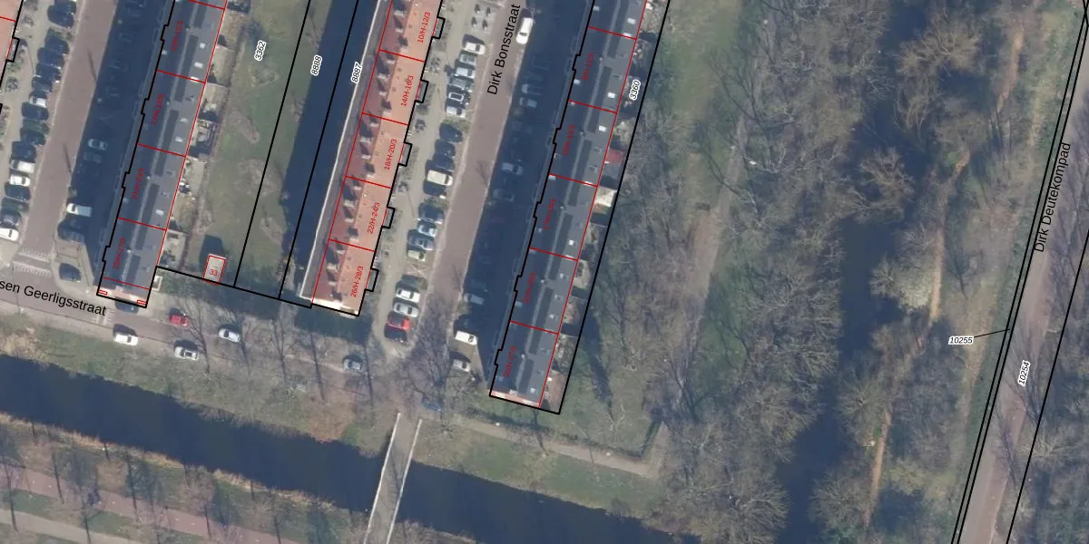 Het perceel waarop Dirk Bonsstraat 21-2 staat heeft een oppervlakte van 1475 m². Dit is een zeer groot perceel. De perceeloppervlakte wordt geregistreerd door het Kadaster. Gedetailleerde informatie over de maten van dit perceel kunt u vinden in het rapport Kadastrale kaart met maatvoering van Dirk Bonsstraat 21-2.