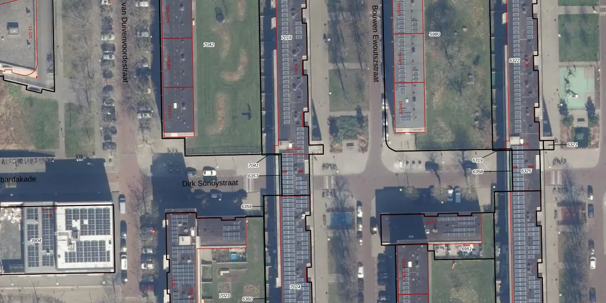 Het perceel waarop Dirk Sonoystraat 106 staat heeft een oppervlakte van 1232 m². Dit is een zeer groot perceel. De perceeloppervlakte wordt geregistreerd door het Kadaster. Gedetailleerde informatie over de maten van dit perceel kunt u vinden in het rapport Kadastrale kaart met maatvoering van Dirk Sonoystraat 106.
