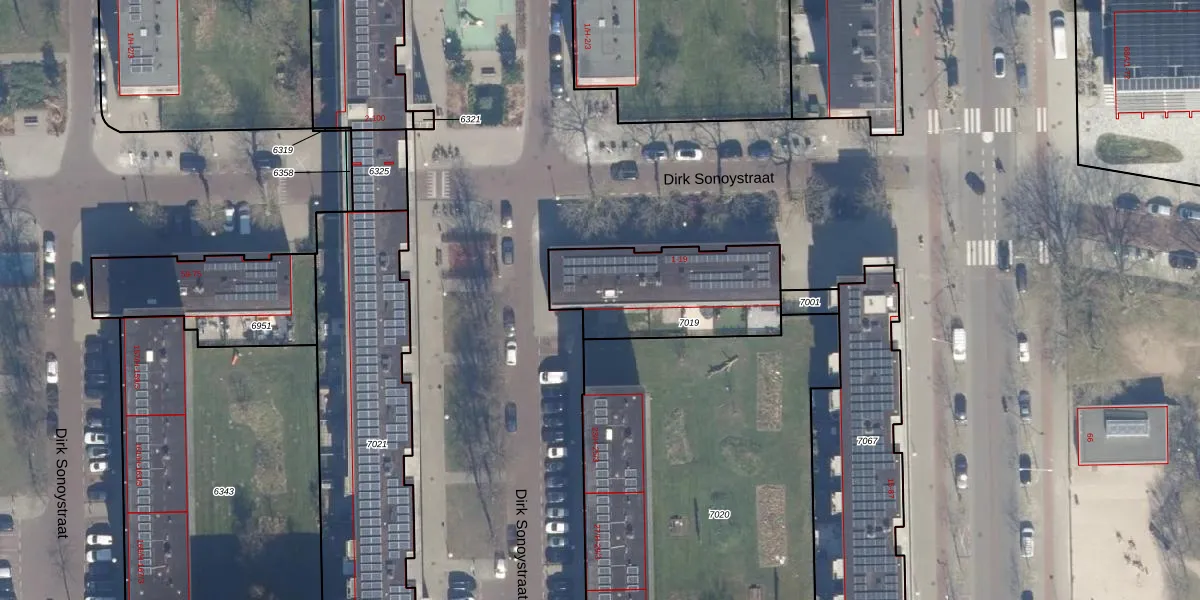 Het perceel waarop Dirk Sonoystraat 11 staat heeft een oppervlakte van 545 m². Dit is een groot perceel. De perceeloppervlakte wordt geregistreerd door het Kadaster. Gedetailleerde informatie over de maten van dit perceel kunt u vinden in het rapport Kadastrale kaart met maatvoering van Dirk Sonoystraat 11.