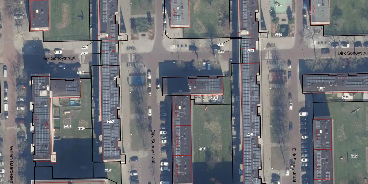 Het perceel waarop Dirk Sonoystraat 71 staat heeft een oppervlakte van 474 m². Dit is een groot perceel. De perceeloppervlakte wordt geregistreerd door het Kadaster. Gedetailleerde informatie over de maten van dit perceel kunt u vinden in het rapport Kadastrale kaart met maatvoering van Dirk Sonoystraat 71.