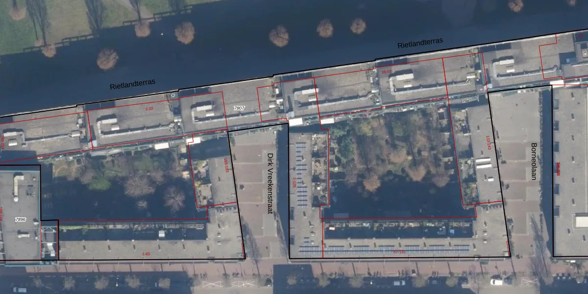 Dirk Vreekenstraat 16 is gelegen op kadastraal perceel ASD02A7807. Deze kadastrale aanduiding is uniek en wordt gebruikt door het Kadaster om eigendomsrechten en andere zakelijke rechten vast te leggen. Het perceel maakt onderdeel uit van de kadastrale gemeente Amsterdam.