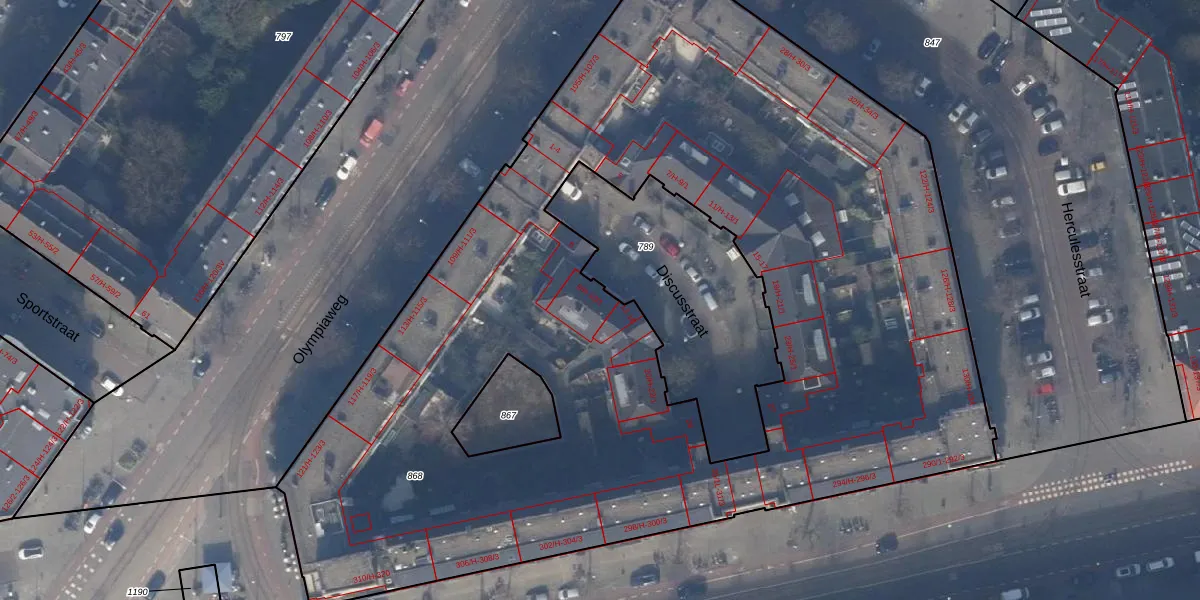 Discusstraat 10-H is gelegen op kadastraal perceel ASD24AC868. Deze kadastrale aanduiding is uniek en wordt gebruikt door het Kadaster om eigendomsrechten en andere zakelijke rechten vast te leggen. Het perceel maakt onderdeel uit van de kadastrale gemeente Amsterdam.