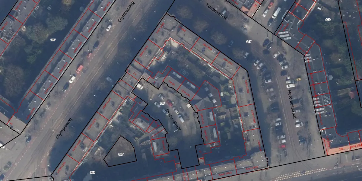 Het adres is gelegen op perceel 868 in de sectie AC en de kadastrale gemeente Amsterdam. De kadastrale aanduiding is aldus ASD24-AC-868. Het perceel is met 6395 m² relatief groot. Het gemiddelde ligt in de kadastrale gemeente Amsterdam op 1365,99 m². Het grootste perceel in de kadastrale gemeente is 11,7 ha. Het kleinste perceel heeft een oppervlakte van 1 m². Op het perceel liggen in totaal 202 adressen. De huidige grenzen van het perceel zijn digitaal in de Basisregistratie Kadaster (BRK) geregistreerd op 30-11-2010.
