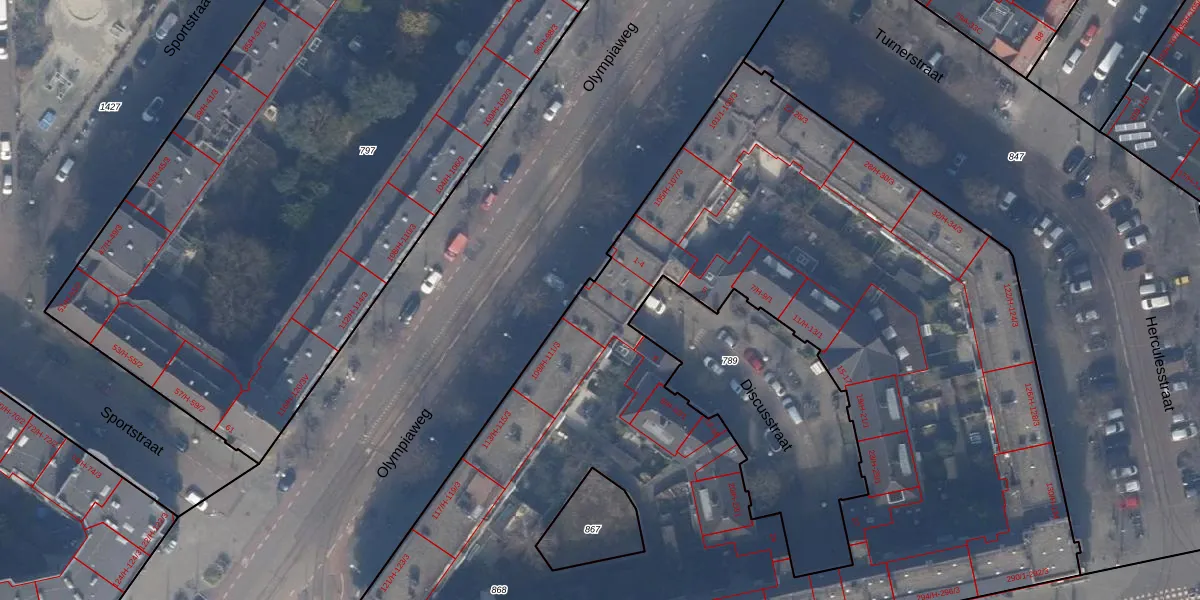 Het perceel waarop Discusstraat 2-3 staat heeft een oppervlakte van 6395 m². Dit is een zeer groot perceel. De perceeloppervlakte wordt geregistreerd door het Kadaster. Gedetailleerde informatie over de maten van dit perceel kunt u vinden in het rapport Kadastrale kaart met maatvoering van Discusstraat 2-3.