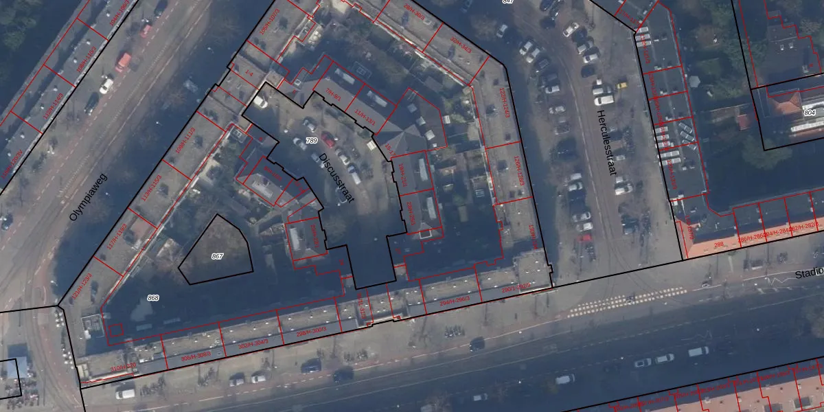 Het adres is gelegen op perceel 868 in de sectie AC en de kadastrale gemeente Amsterdam. De kadastrale aanduiding is aldus ASD24-AC-868. Het perceel is met 6395 m² relatief groot. Het gemiddelde ligt in de kadastrale gemeente Amsterdam op 1365,99 m². Het kleinste perceel in de kadastrale gemeente is 1 m² groot. De grootste perceeloppervlakte is 11,7 ha. Op het perceel zijn 202 adressen aanwezig. De huidige grenzen van het perceel zijn digitaal in de Basisregistratie Kadaster (BRK) geregistreerd op 30-11-2010.