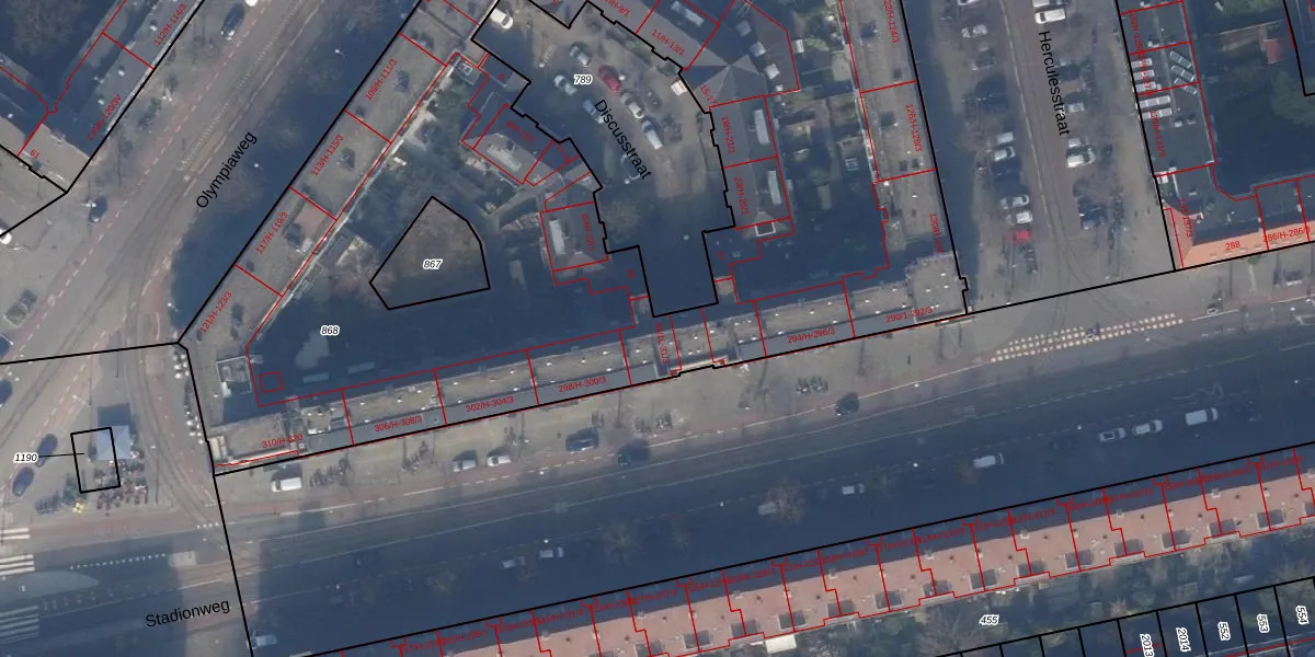 Het adres is gelegen op perceel 868 in de sectie AC en de kadastrale gemeente Amsterdam. De kadastrale aanduiding is aldus ASD24-AC-868. Het perceel is met 6395 m² relatief groot. Het gemiddelde ligt in de kadastrale gemeente Amsterdam op 1365,99 m². Het kleinste perceel in de kadastrale gemeente is 1 m² groot. De grootste perceeloppervlakte is 11,7 ha. Op het perceel liggen in totaal 202 adressen. In de Basisregistratie Kadaster (BRK) werden de grenzen van het perceel geregistreerd op 30-11-2010.