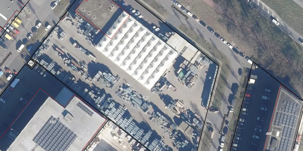 Het perceel waarop Disketteweg 126 staat heeft een oppervlakte van 8566 m². Dit is een zeer groot perceel. De perceeloppervlakte wordt geregistreerd door het Kadaster. Gedetailleerde informatie over de maten van dit perceel kunt u vinden in het rapport Kadastrale kaart met maatvoering van Disketteweg 126.