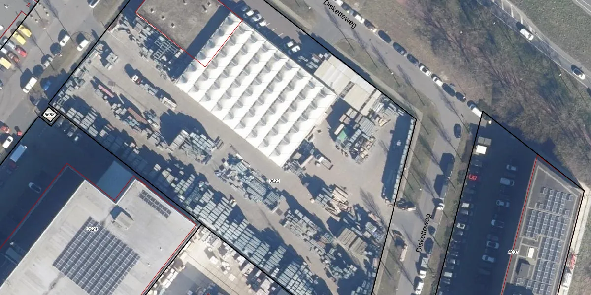 Het perceel waarop Disketteweg 128 staat heeft een oppervlakte van 8566 m². Dit is een zeer groot perceel. De perceeloppervlakte wordt geregistreerd door het Kadaster. Gedetailleerde informatie over de maten van dit perceel kunt u vinden in het rapport Kadastrale kaart met maatvoering van Disketteweg 128.