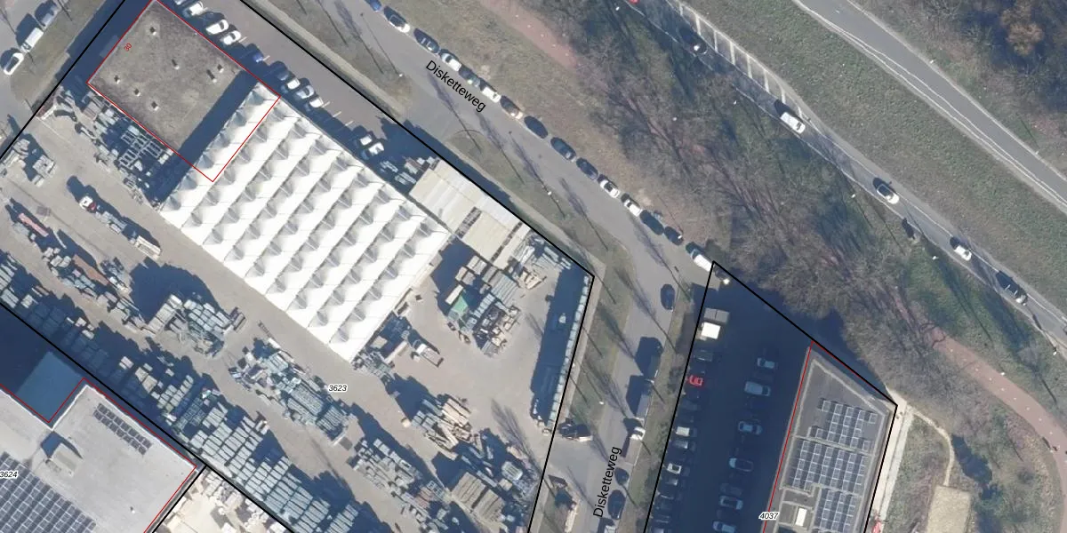 Het perceel waarop Disketteweg 142 staat heeft een oppervlakte van 8566 m². Dit is een zeer groot perceel. De perceeloppervlakte wordt geregistreerd door het Kadaster. Gedetailleerde informatie over de maten van dit perceel kunt u vinden in het rapport Kadastrale kaart met maatvoering van Disketteweg 142.